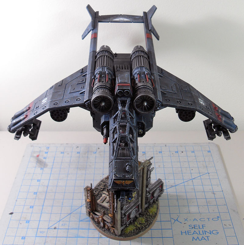 This is my first of 2 Valkyries. The nose art is a decal set that I purchased from Starship Modeler. The 2nd Valkyrie will be similar. I use them as transports for my melta vets.